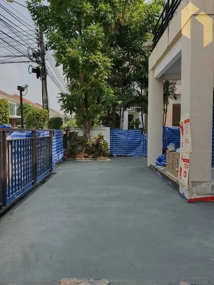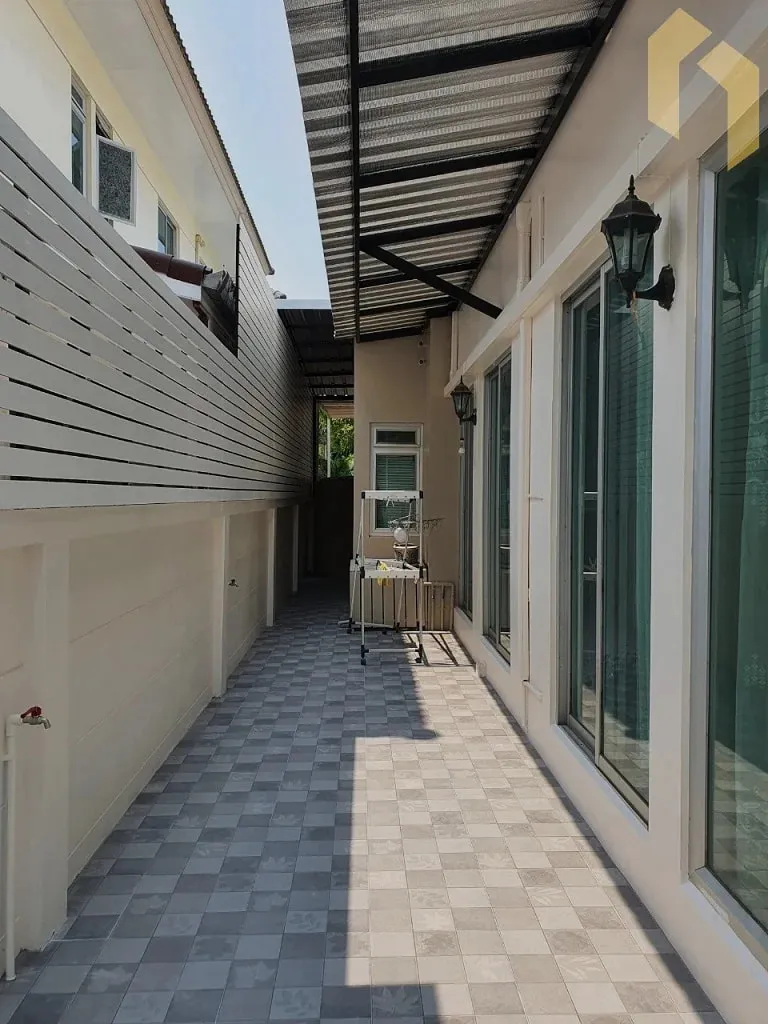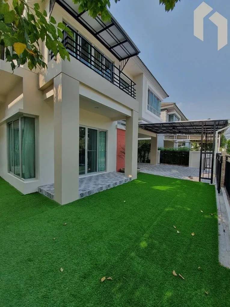 - ปูกระเบื้องรอบบ้าน บางส่วนปูหญ้าเทียม