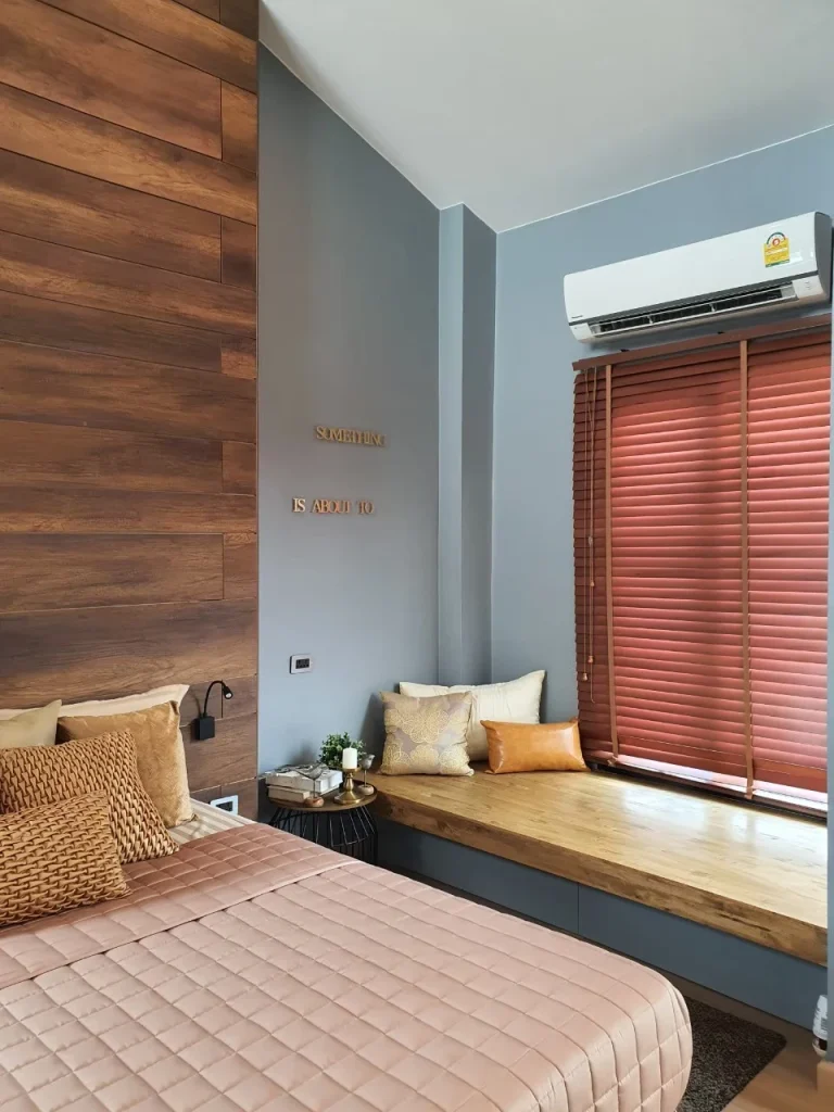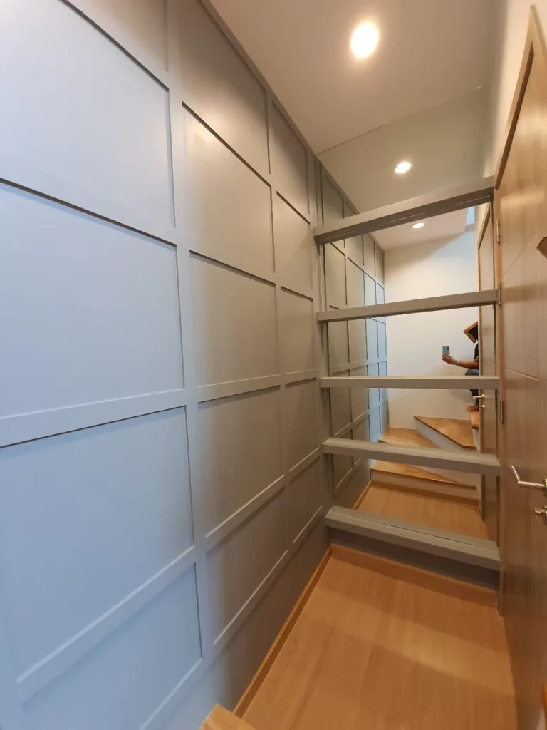 บ้านหลังใหม่ของคุณเอ็ม เป็นลักษณะทาวน์โฮม 3 ชั้น โดยงานหลักๆ จะเป็นงาน Built-in โดยคุณเอ็มต้องการใช้แบบจากบ้านตัวอย่างของโครงการ ประกอบด้วย ชั้น 1 ชานพักเท้า และผนังห้องนั่งเล่น ชั้น 2 ตู้เสื้อผ้าทั้ง 2 ห้องนอน และชั้น 3 จากห้องโล่ง ๆ เพิ่มงานไม้ Built-in ทำให้ดูมีมิติ และมีสไตล์แบบ Double Volume พร้อมทั้งมีงานต่อเติมครัว และหลังคาโรงจอดรถ ขอบคุณที่วางใจให้เราดูแล
