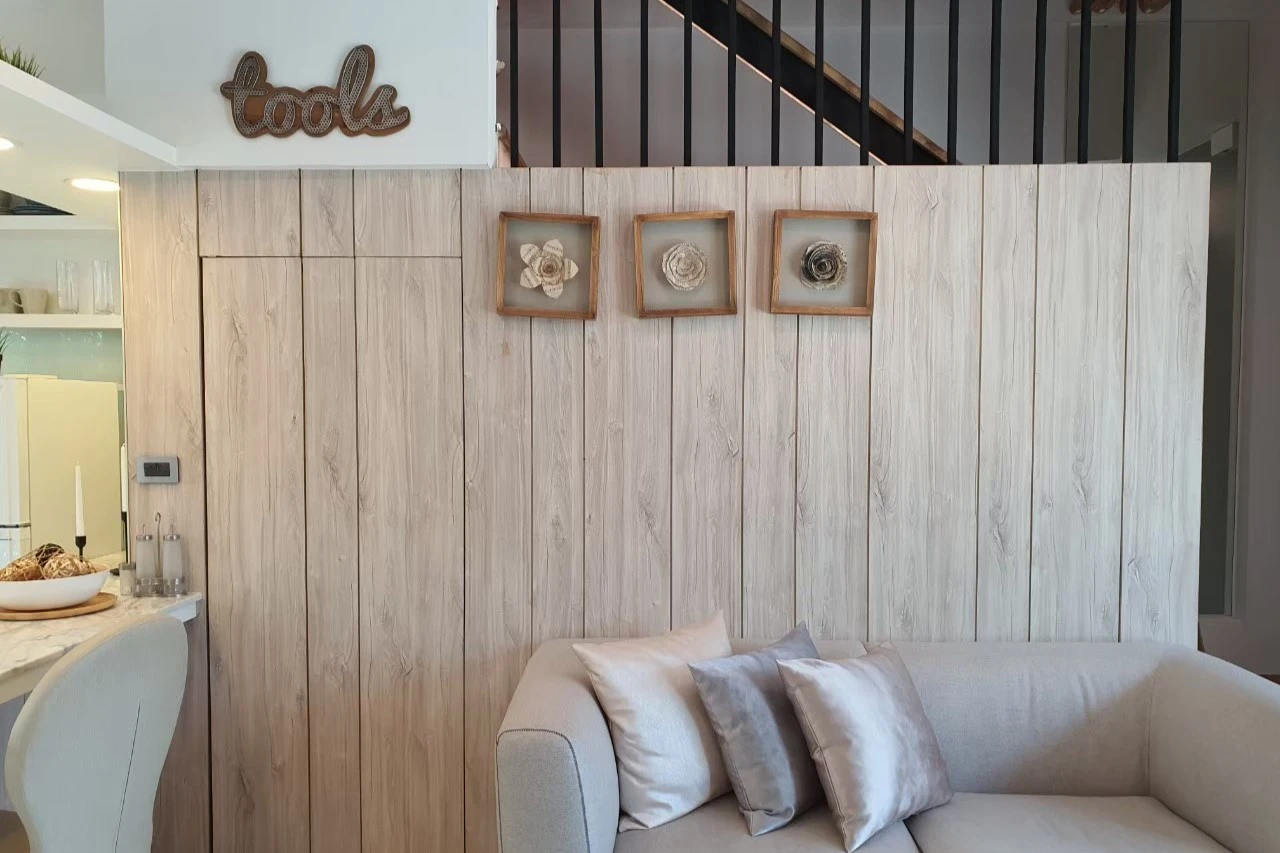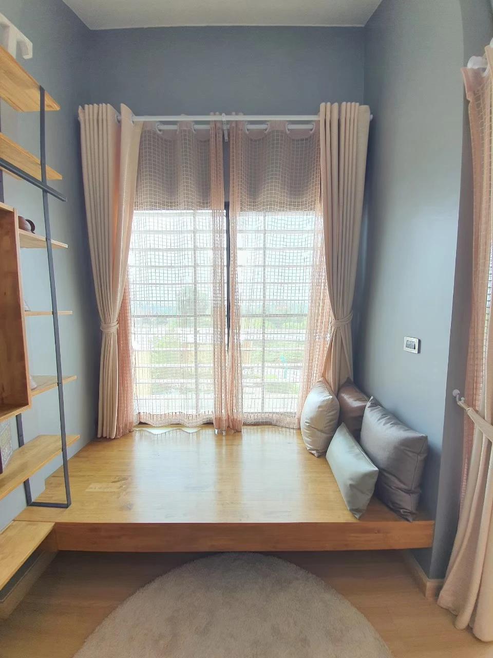 บ้านหลังใหม่ของคุณเอ็ม เป็นลักษณะทาวน์โฮม 3 ชั้น โดยงานหลักๆ จะเป็นงาน Built-in โดยคุณเอ็มต้องการใช้แบบจากบ้านตัวอย่างของโครงการ ประกอบด้วย ชั้น 1 ชานพักเท้า และผนังห้องนั่งเล่น ชั้น 2 ตู้เสื้อผ้าทั้ง 2 ห้องนอน และชั้น 3 จากห้องโล่ง ๆ เพิ่มงานไม้ Built-in ทำให้ดูมีมิติ และมีสไตล์แบบ Double Volume พร้อมทั้งมีงานต่อเติมครัว และหลังคาโรงจอดรถ ขอบคุณที่วางใจให้เราดูแล
