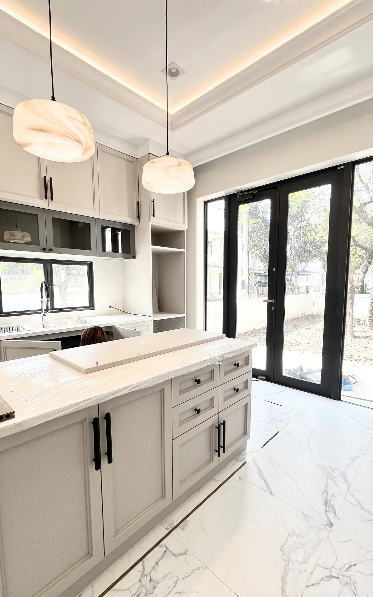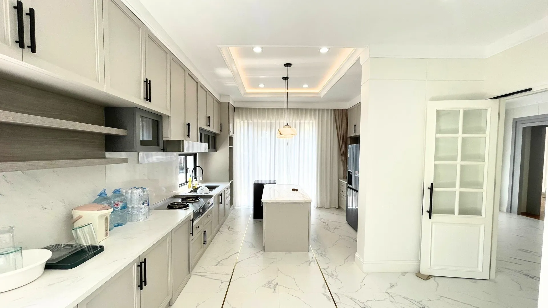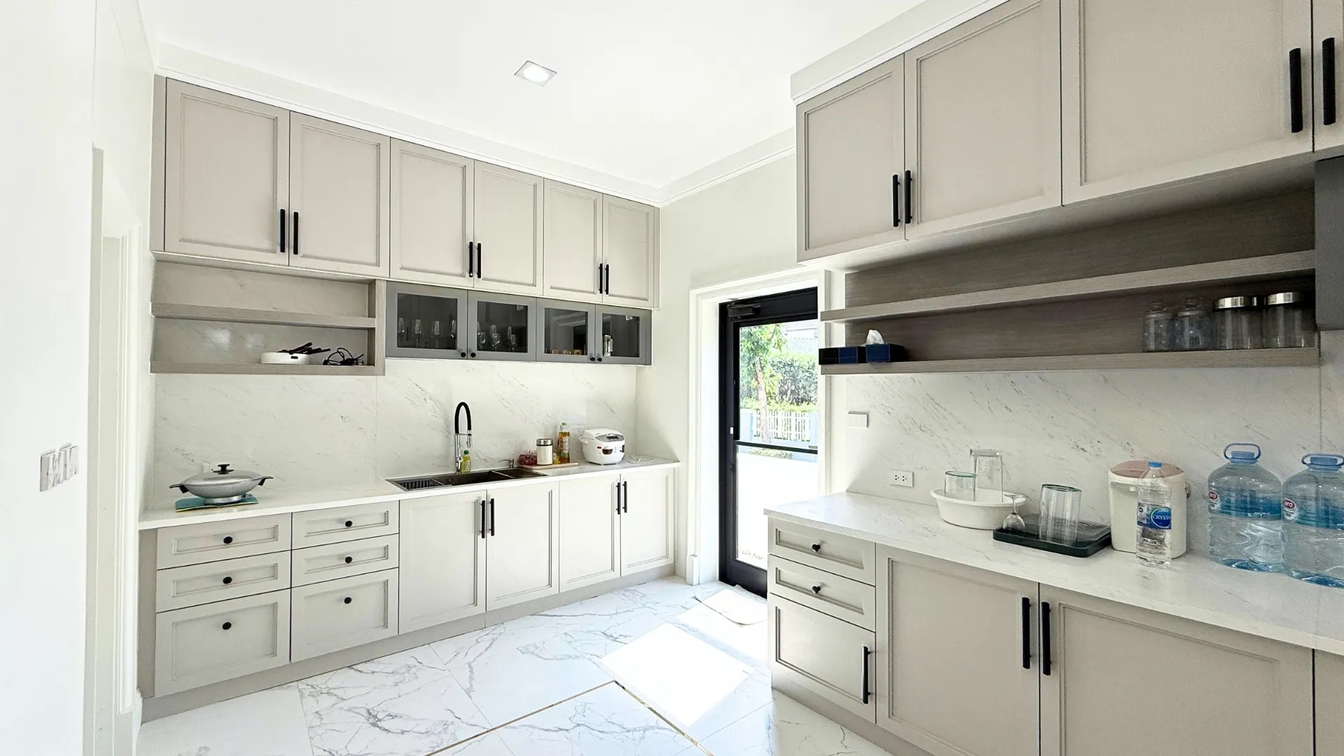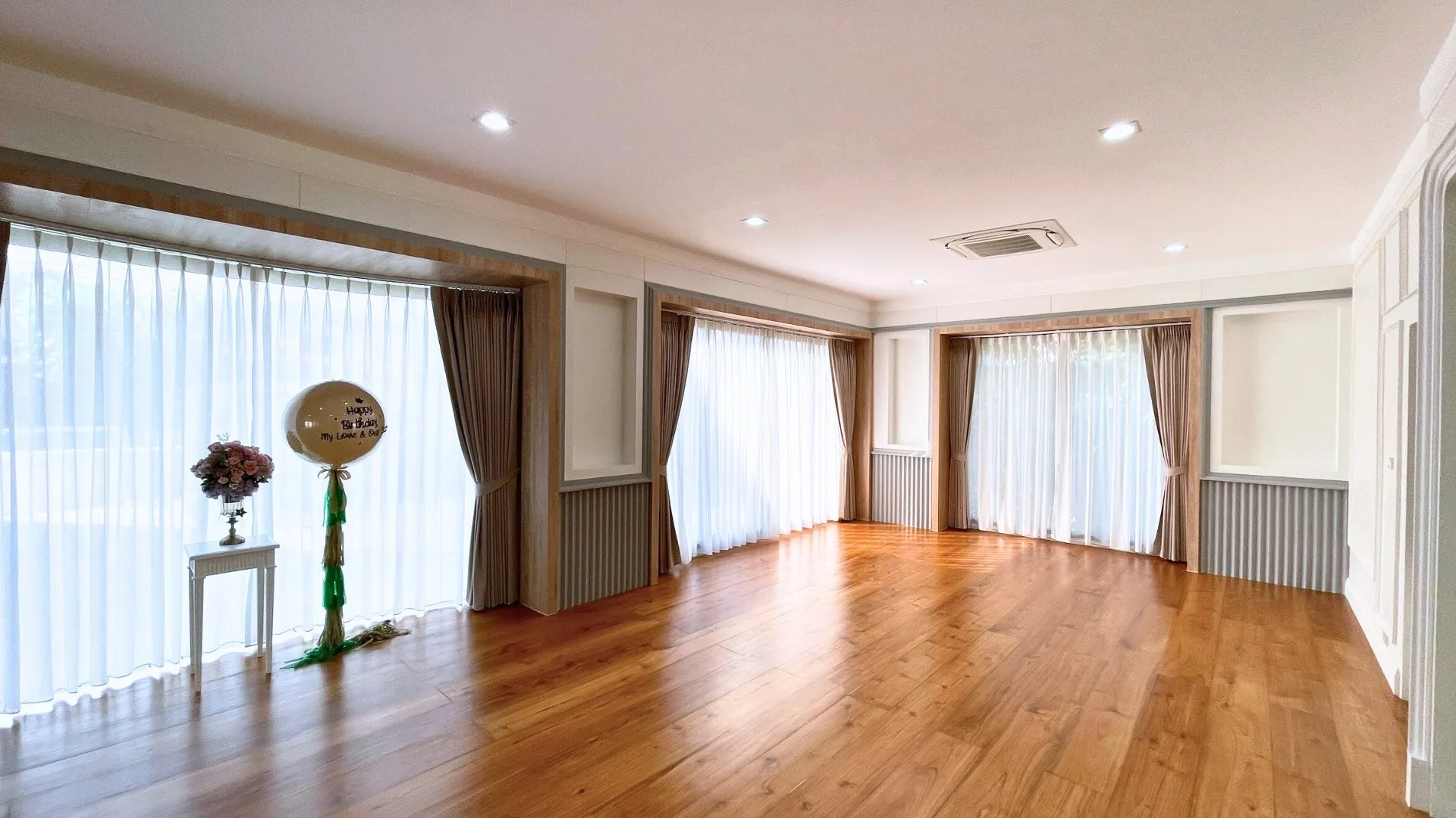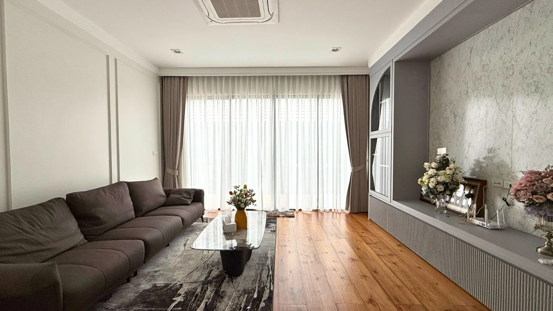 เพื่อให้สัมผัสของการอยู่อาศัยนุ่มนวลและเชื่อมต่อกันอย่างลงตัว เราได้ทำการรื้อพื้นเดิมและปูพื้นใหม่ทั้งหลังครับ โดยเลือกใช้วัสดุเกรดพรีเมียมที่มีลวดลายและโทนสีที่ให้ความรู้สึกหรูหรา คลาสสิก แต่ยังคงความอบอุ่นไว้ ลองจินตนาการถึงการเดินเท้าเปล่าลงบนพื้นสวยๆ ในยามเช้าดูสิครับ… มันคือความรู้สึกที่ช่วยเติมเต็มพลังงานดีๆ ให้กับทุกวันได้อย่างแท้จริง