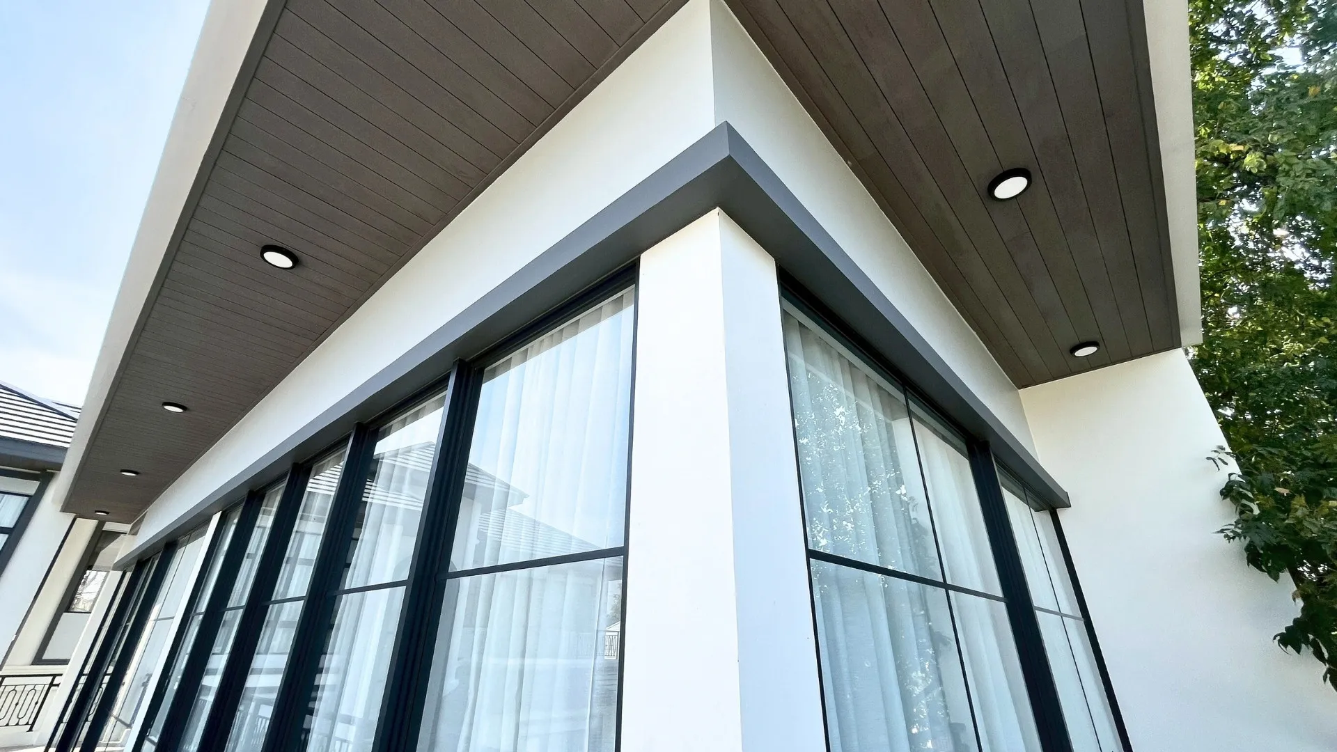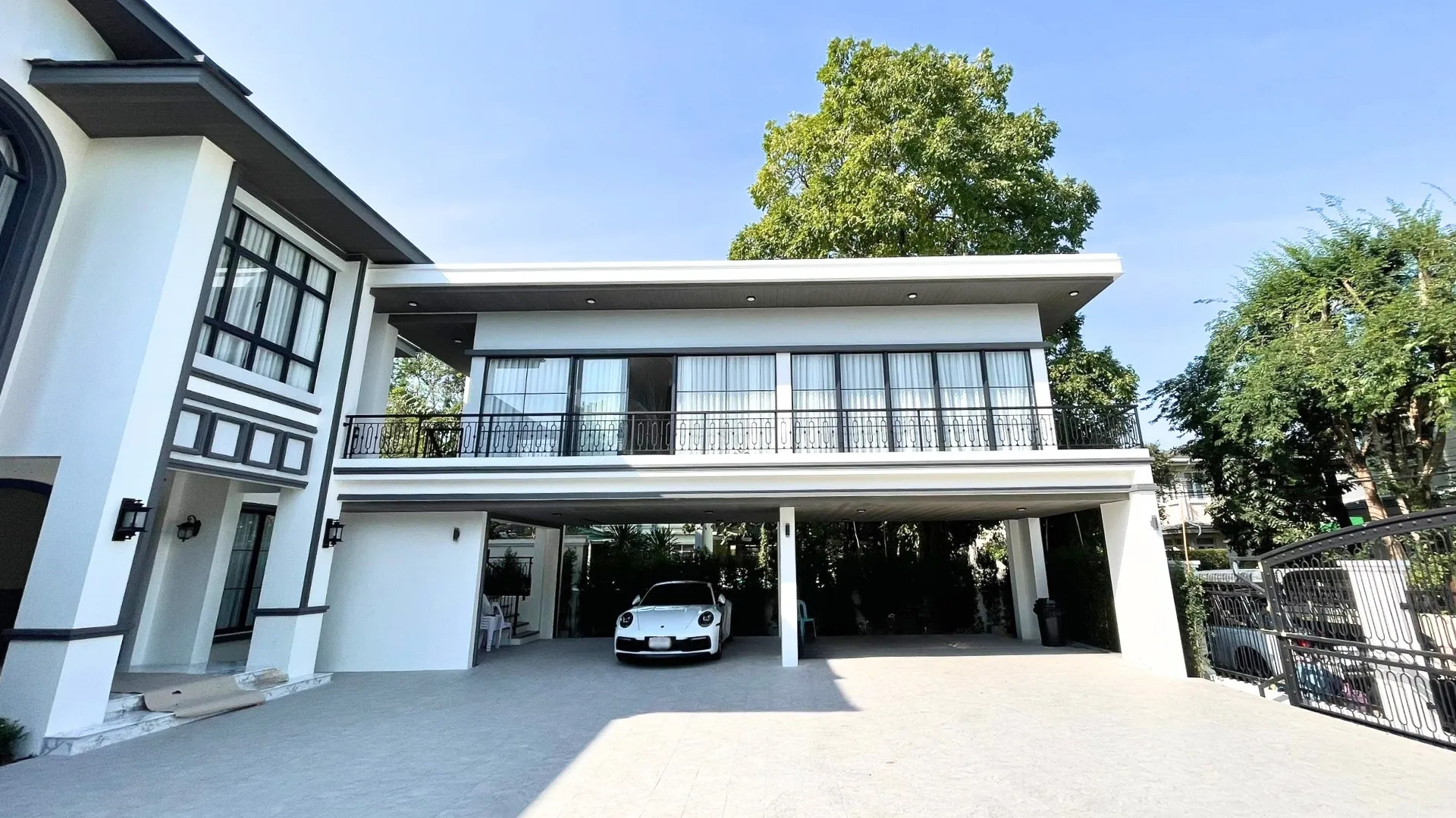 เราเริ่มต้นจากการปรับโฉมหน้าบ้านใหม่ทั้งหมด เพราะเราเชื่อว่า “ความประทับใจแรก” คือสิ่งสำคัญ ทีมงานได้ออกแบบจัดสวนและภูมิทัศน์ (Landscape) รอบบ้านใหม่ เปลี่ยนพื้นที่ว่างเปล่าให้กลายเป็นพื้นที่สีเขียวที่ร่มรื่น สบายตา มีการจัดวางต้นไม้ฟอร์มสวยเพื่อสร้างร่มเงาและมิติให้กับตัวบ้าน ผสมผสานกับการออกแบบทางเดินและเฉลียงพักผ่อน ให้ครอบครัวสามารถออกมาสูดอากาศ หรือจัดปาร์ตี้เล็กๆ ในสวนได้อย่างเป็นส่วนตัว